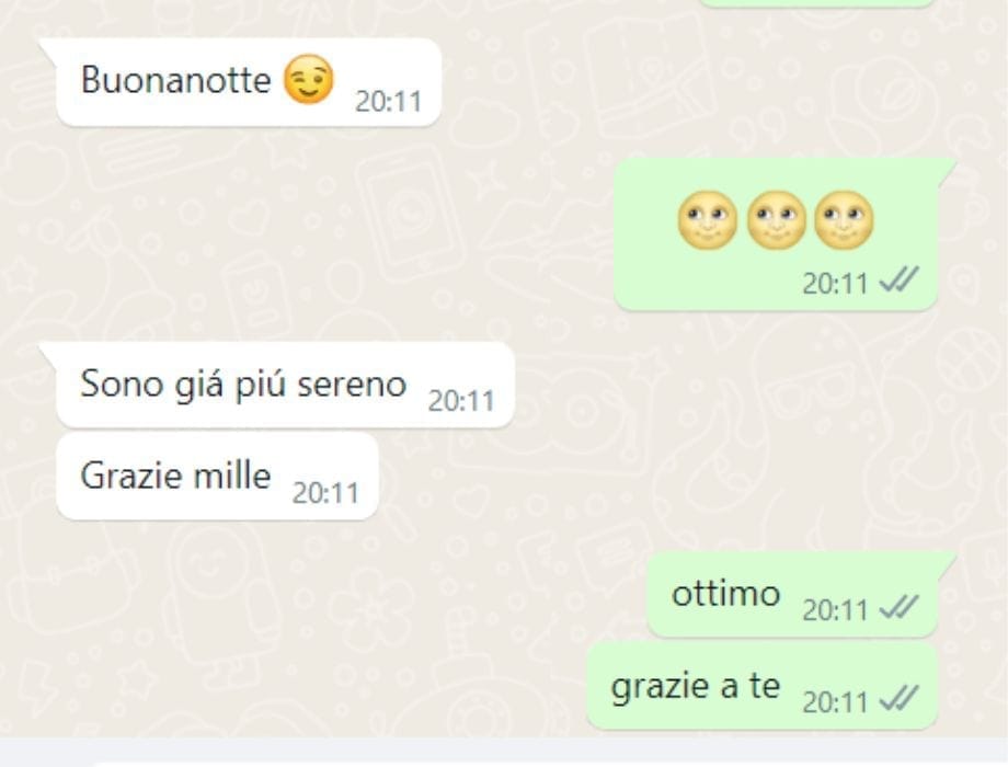 Passa molto tempo a raccontarmi la sua storia, mi dice "non ce la faccio a perdonare", a me non piace ascoltare il dolore delle persone, ma vedo che ha bisogno di sfogare.