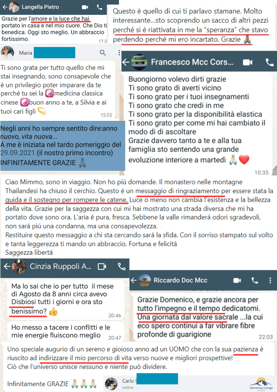 'Domenico mi ha fatto crescere come uomo, ti aiuta a capire come evolvere il pensiero cosicchè si può avere più chiarezza nel prendere le scelte.